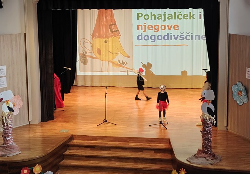 Pravijo, da kjer je ljubezen, je vedno dovolj prostora za vse. Palček Pohajalček je zgodba, ki govori ravno o tem. Otroci dramske skupine so z igro povezovali ostale nastope otrok. Vsaka skupina se je predstavila s plesnim nastopom, tisti najmlajši pa so ob sebi imeli tudi atije, da jim je bilo lažje na velikem odru. Tudi mali pevci so zapeli pesmi, ki so segle vse do srca. Otroci so bili suvereni, predstavili so se z deklamacijami in z lepimi mislimi, ki so bile namenjene mamicam ob prazniku.