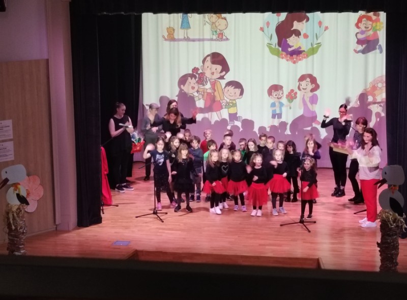 Mamicam za praznik smo voščili s ponosom in veseljem. Ob koncu nastopa so jim otroci podarili čudovito darilo in objemov seveda ni zmanjkalo.