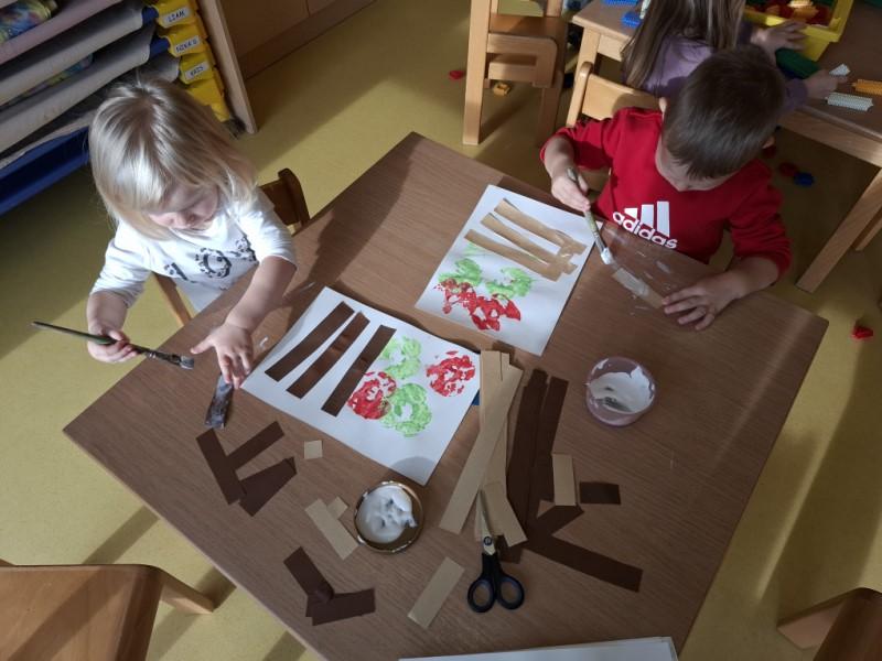 Otroci v skupini Lunice so pravi umetniki. Ustvarjajo še zadnje jesenske utrinke, preden se jesen dokončno poslovi.