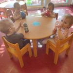 V skupini Medvedki osvajamo dnevno rutino vrtca. Trudimo se za samostojno hranjenje in pijemo dovolj tekočine. Ob tem se igramo in spoznavamo nove stvari. Dobro nam gre igranje na ritmične instrumente.