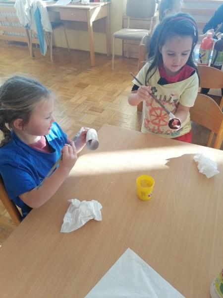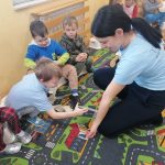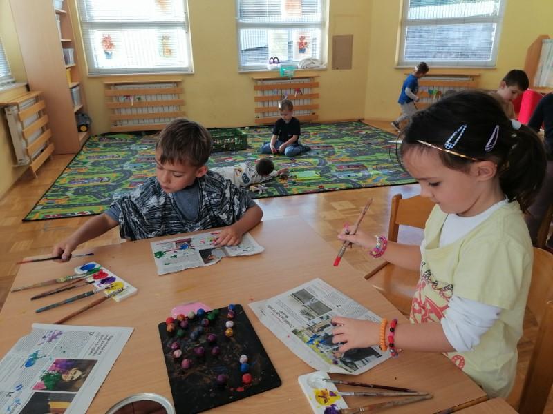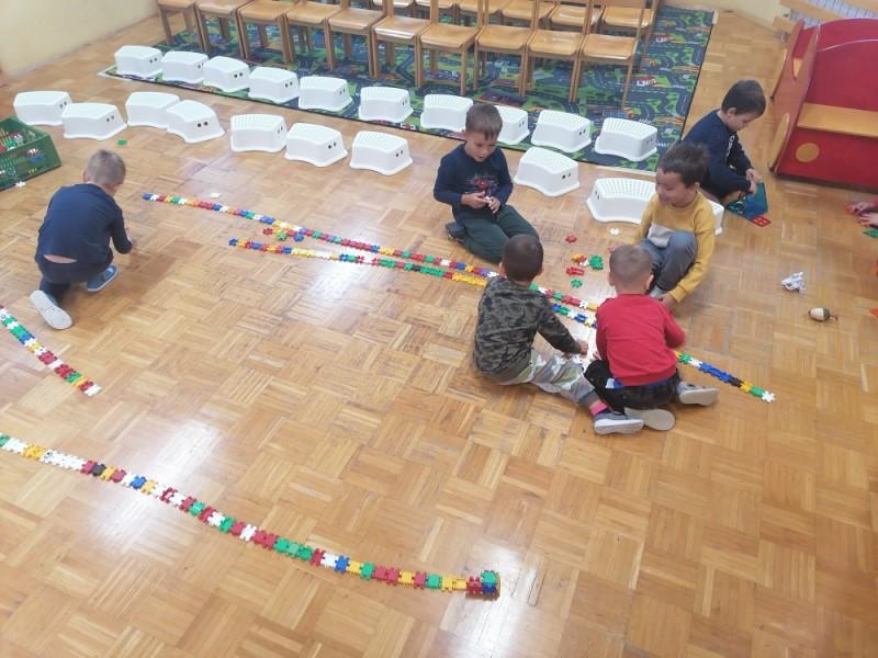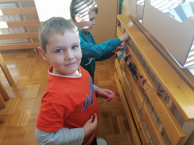 Ob igri si razvijamo prstne spretnosti (obešamo perilo s klupicami, gradimo piramide in ceste).