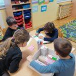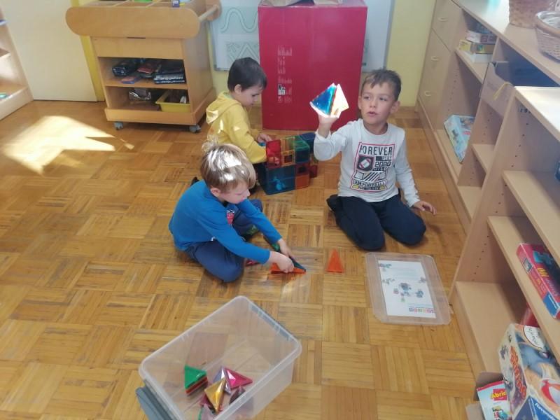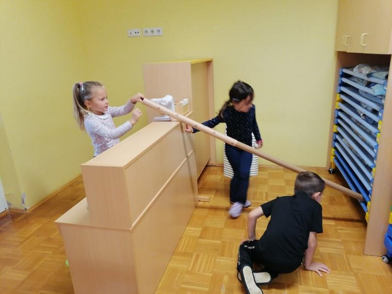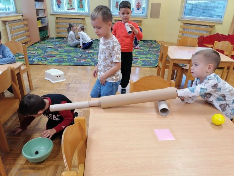Otroci si pridobivajo nova znanja na podlagi aktivnega raziskovanja. Prinašajo različne predmete od doma in sklepajo, ugotavljajo kaj se kotali in kaj drsi po klančini.