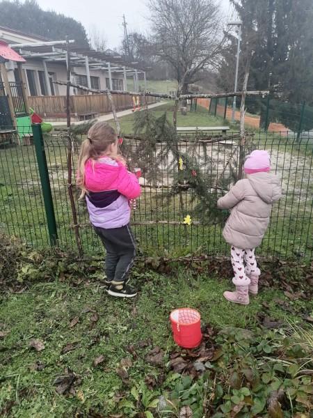 Veseli december je že tu. Izdelali smo obeske in z njimi polepšali smrečico in okolico vrtca.
