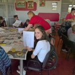 V ponedeljek, 12. septembra 2016 je 7 učencev iz 7., 8. in 9. razreda (Mojca Pleteršek, Sara Pavalec, Sara Lukič, Andrej Železnik, Mitja Polanec, Marcel Bohl in Anel Črnčec) v spremstvu dveh učiteljic obiskalo Dom starejših Idila v Vukovskem dolu. Naši učenci so oskrbovancem doma z pridnimi rokami, veliko dobre volje in ob zvokih harmonike našega muzikanta Mitje Polanca popestrili njihovo ročnodelsko delavnico, kjer so jim pomagali pri brušenju lesa iz katerega bodo naredili počivalnike, ki bodo krasili teraso Doma. Ponovno smo jim podarili sliko naše učenke Mojce Pleteršek, ki jim jo je tokrat lahko predla kar sama. Druženje smo zaključili z dobrotami iz njihove kuhinje in drobnimi darilci za vsakega izmed nas, ki so jih izdelali oskrbovanci sami.