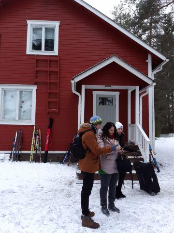 V soboto, 15. februarja smo se ob dveh popoldne odpravili na letališče Dunaj. Na poti do tja smo imeli le manjši zaplet na meji, drugače pa nismo imeli težav. Nato smo prispeli na letališče, kjer smo oddali prtljago in se ob 18.45 vkrcali na letalo. Zame je bilo to prvič, da sem šla na letalo, zato sem bila zelo navdušena. Okoli desete ure smo pristali v Helsinkih, kjer smo prestopili na drugo letalo in okoli prve ure zjutraj prispeli v Oulu. Prenočili smo v hotelu. Zjutraj smo šli na zajtrk in se nato sprehodili po mestu. V tem času leta je tam okoli -20⁰C, mi pa smo imeli le -2⁰C. Po sprehodu nas je že kar zeblo, zato smo se odpravili iskat nekaj za pojest, a so nas obvestili, da nas družine že čakajo pred hotelom. Okoli 12. ure sva se jaz in Jure odpravila k družinam. Družina, pri kateri sem bila jaz, je imela tri otroke: Amando ter dvojčka Carlos in Oliver. Bili so zelo prijazni. Še tisti večer so me peljali v mesto, kjer sem malo spoznala njihovo življenje.